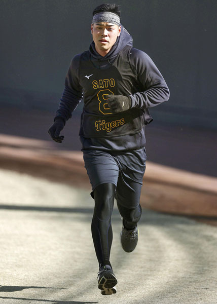 新人合同自主トレを行う佐藤輝(C)共同通信社