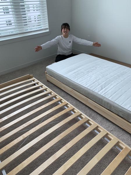 新居でベッドを組み立て中(提供写真)