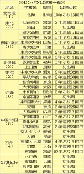 第93回選抜高校野球大会 出場32校(C)日刊ゲンダイ