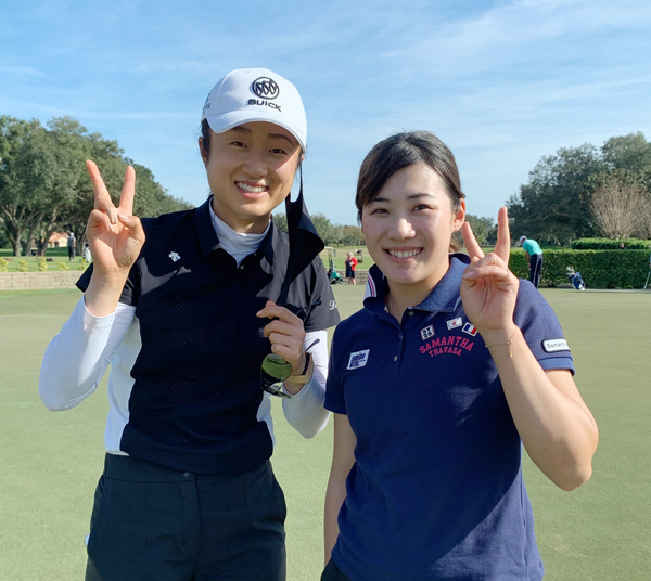 リウ・ユ(左)と一緒にラウンド(C)日刊ゲンダイ