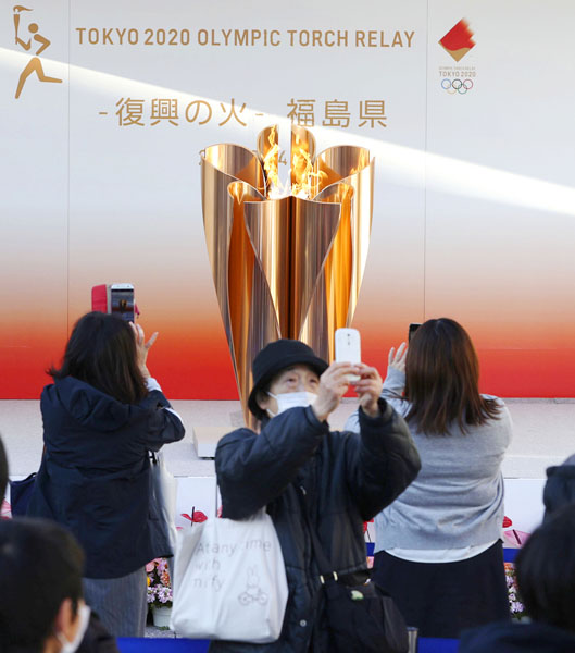 コロナ禍前は「復興の火」として展示されていた東京五輪の聖火(C)共同通信社