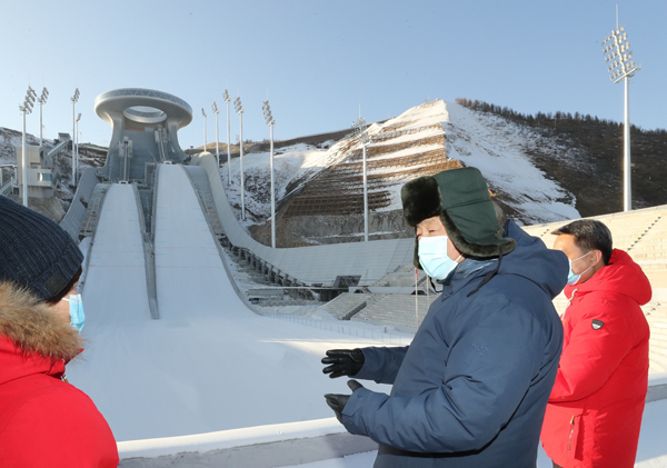 北京五輪のジャンプ台を視察する中国の習近平国家主席(右2)/(C)新華社/共同通信イメージズ