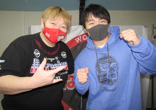 マーベラスの長与千種代表(左)と今井礼夢(C)日刊ゲンダイ