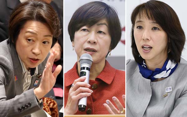 誰になるのか…(左から橋本五輪相、山口JOC理事、小谷JOC理事)/(C)共同通信社