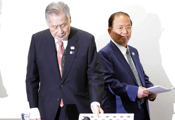 森喜朗氏(左)の辞任を武藤事務総長は慰留していた(C)日刊ゲンダイ