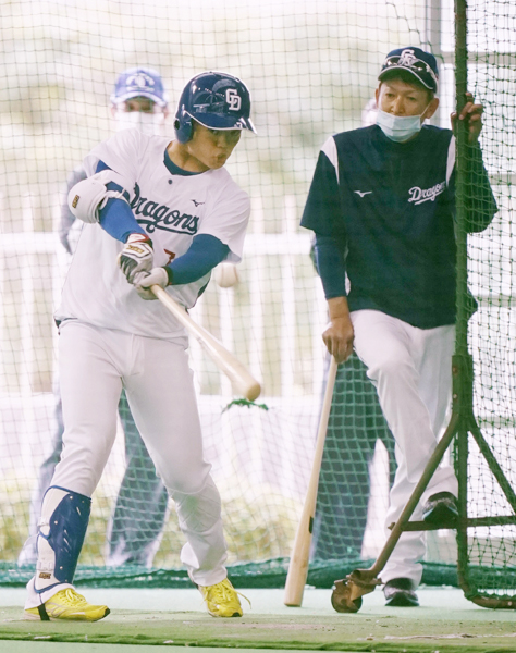 立浪臨時コーチ(右)も期待が大きい(C)共同通信社
