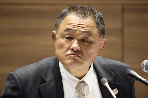 26日の会見で辞任を示唆したが結局、続投する全柔連の山下会長(C)共同通信社