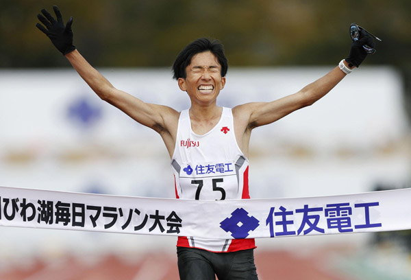 日本新記録で優勝した鈴木健吾(C)共同通信社