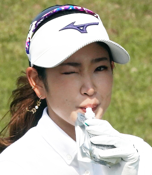 カメラマンにウインクする原英莉花(C)日刊ゲンダイ