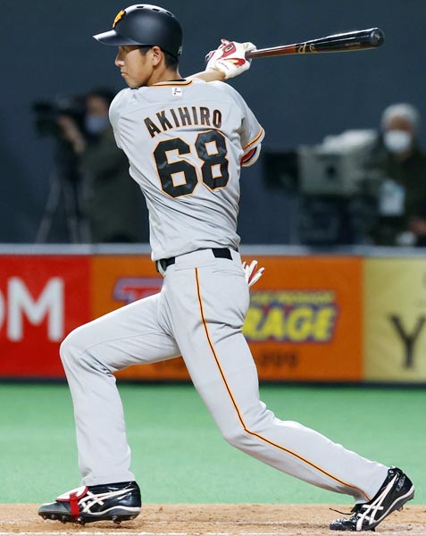 七回にこの日の2安打目を放つ秋広(C)共同通信社