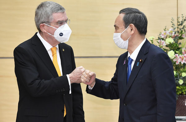 IOCのバッハ会長の本音は?(右は、菅首相)/(C)共同通信社