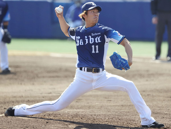 中日戦に先発し、5回1失点の西武の今井投手(C)共同通信社