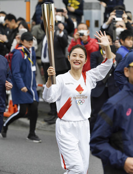 2020年のリハーサルでトーチを持って走った石原さとみ。本番は長崎のランナーに(C)共同通信社
