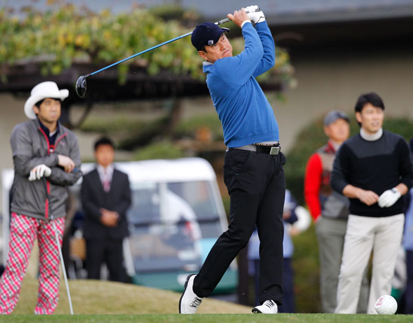 プロ級の腕前を誇る原監督のティーショット(C)日刊ゲンダイ