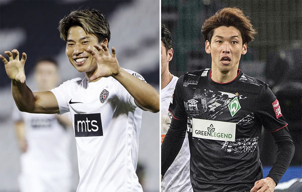 日本代表FWの大迫(右、=共同)と浅野(C)ゲッティ=共同