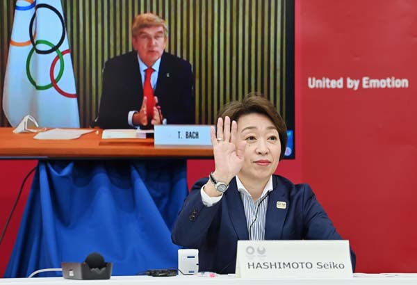 橋本聖子組織委会長が直面するトラブル(後ろのモニターはIOCのバッハ会長)/(代表撮影)