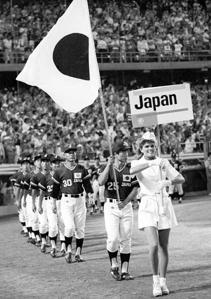 1984年ロス五輪、野球の開会式で入場行進する日本チーム(C)共同通信社