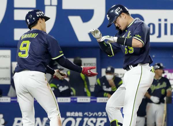 中押し本塁打を放った村上(右)/(C)共同通信社