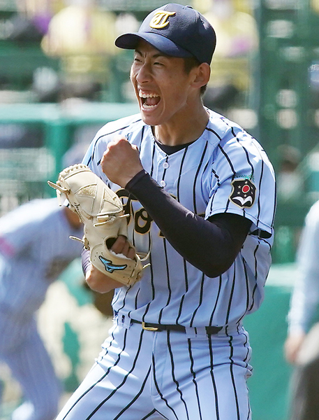 決勝進出を決め、ガッツポーズをする東海大相模の石田投手(C)日刊ゲンダイ