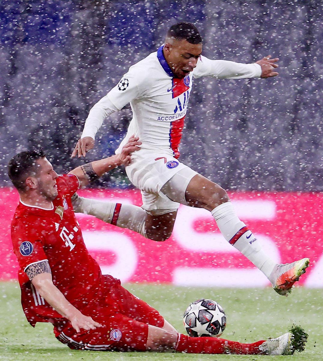 雪の中を突進するエムバペ(C)ロイター
