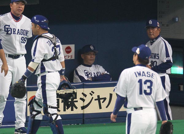 ベンチでどっしり構える落合監督(C)日刊ゲンダイ