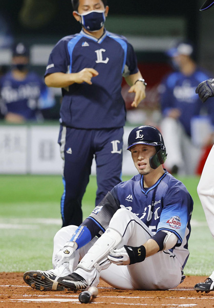 西武にとっても痛いが…(一回、左足首付近に死球を受けた外崎=右)/(C)共同通信社