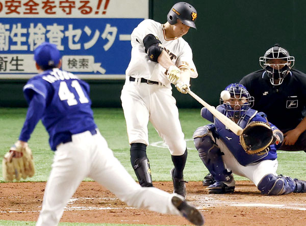 三回に2ランを放つ梶谷(C)共同通信社