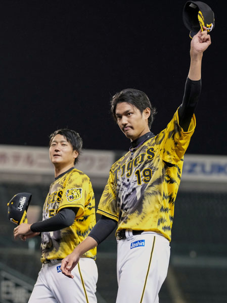 お立ち台でもちゃめっ気タップリだった藤浪(右)/(C)共同通信社