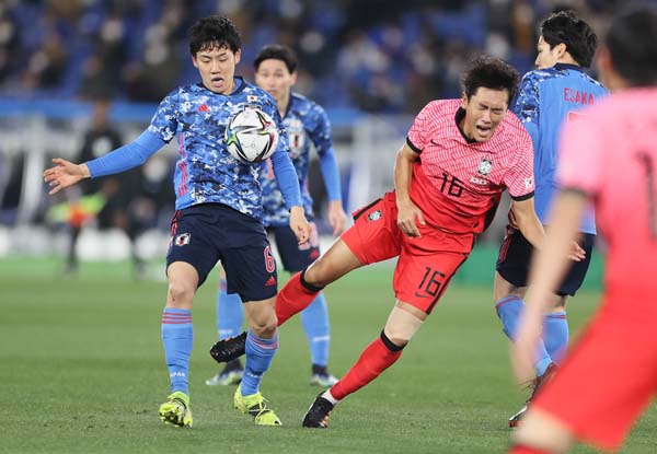 3月の韓国代表選で相手選手を吹っ飛ばして攻め上がる遠藤(C)Norio ROKUKAWA/Office La Strada