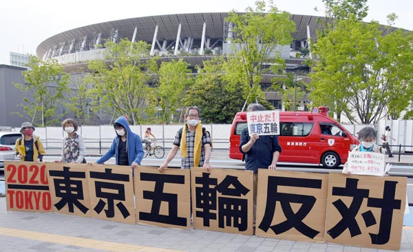 国立競技場周辺では五輪中止を求めるデモが(C)日刊ゲンダイ