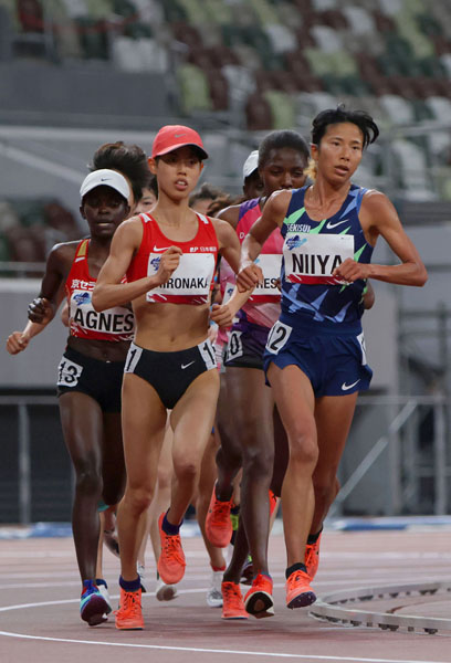 テスト大会5000メートルは5位に終わった新谷(左は4位の弘中瑠梨佳)/(C)日刊ゲンダイ