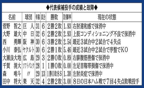 【日本代表候補投手の成績と故障】/(C)日刊ゲンダイ