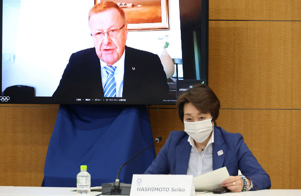 インチキ尽くし(IOCのコーツ調整委員長とリモート会議をする橋本聖子組織委会長)/(C)ロイター