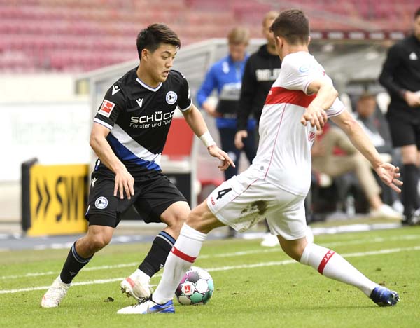5月22日のブンデスリーガ最終節シュツットガルト戦後半にゴールを決めた堂安(C)ロイター