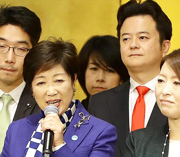 小池百合人都知事と小山有彦都議(右2)/(C)日刊ゲンダイ