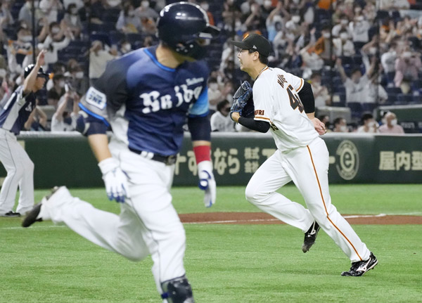 九回に栗山(手前)に同点2点打を許した畠(C)共同通信社