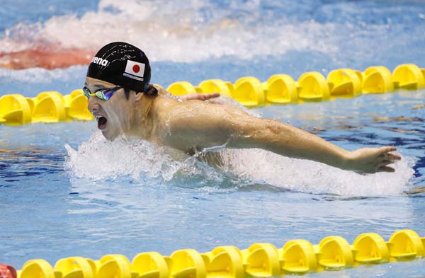 男子400メートル個人メドレー決勝で優勝した瀬戸大也のバタフライ(C)共同通信社