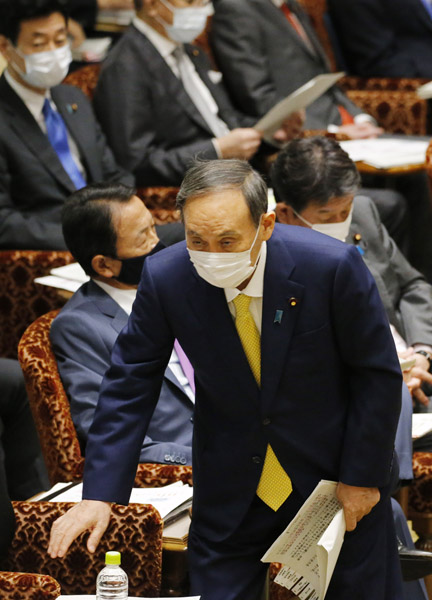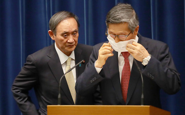 分科会の尾身会長(右)と菅官邸の対立はいちだんと…(左は、菅首相)/(C)日刊ゲンダイ