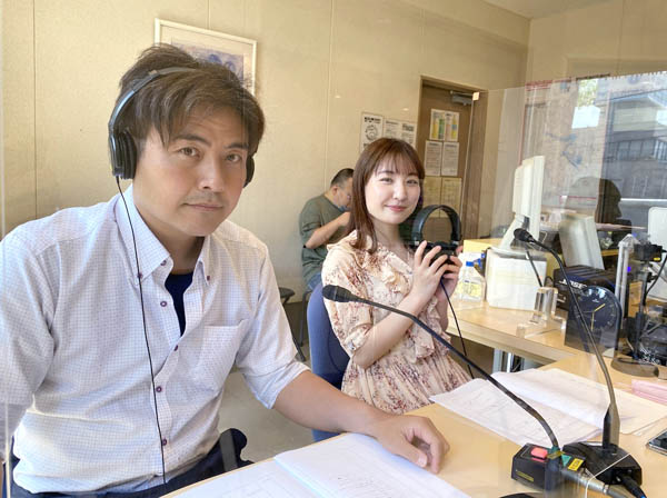 FMふくやまのスタジオで(右はサブパーソナリティーのソプラノ歌手・遠藤美和さん)/(C)日刊ゲンダイ