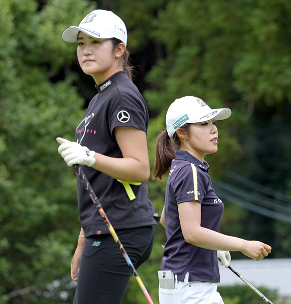 同組でプレーした稲見(左)と古江(C)共同通信社