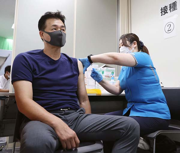 ワクチン接種を受ける中日の与田監督(C)共同通信社