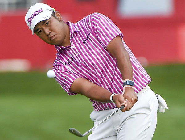 ロケットモーゲージ第1ラウンドでアプローチショットを放つ松山(C)共同通信社