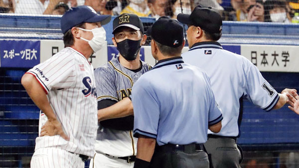 矢野監督(左2)が高津監督(左)を怒鳴りつけるシーンも(C)共同通信社