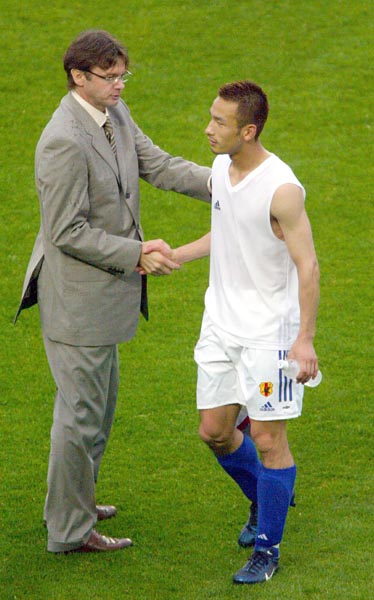 トルシエ監督と握手を交わす中田英寿(C)日刊ゲンダイ