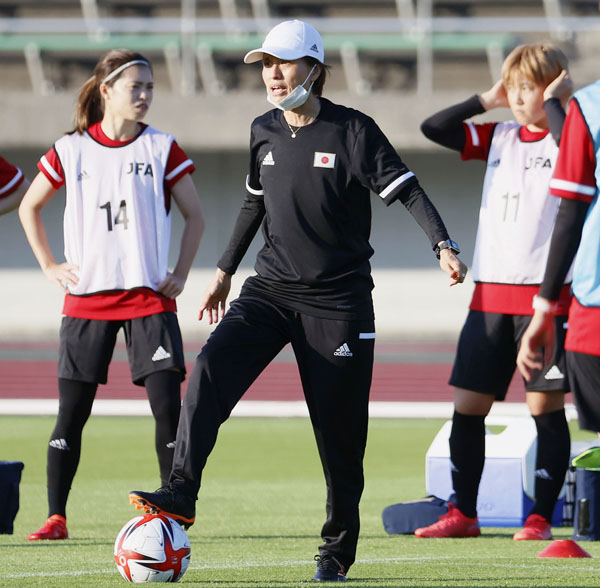 17日の練習で指示を出す東京五輪女子サッカーの高倉麻子監督(C)共同通信社