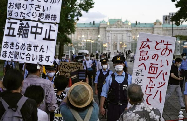 迎賓館前では反対派が「バッハ帰れ!」とシュプレヒコールを繰り返した(18日)/(C)日刊ゲンダイ