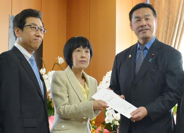 招致に意欲マンマンだったが…(馳文科相〈右〉に要望書を手渡す北海道の高橋はるみ知事〈央〉、左は札幌市の秋元克広市長=2015年当時)/(C)共同通信社