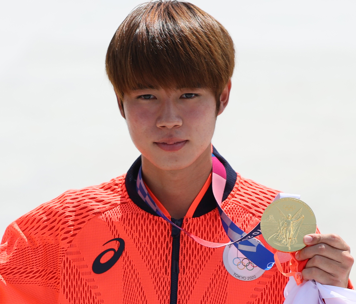男子ストリートで優勝し、金メダルを手にする堀米(C)JMPA