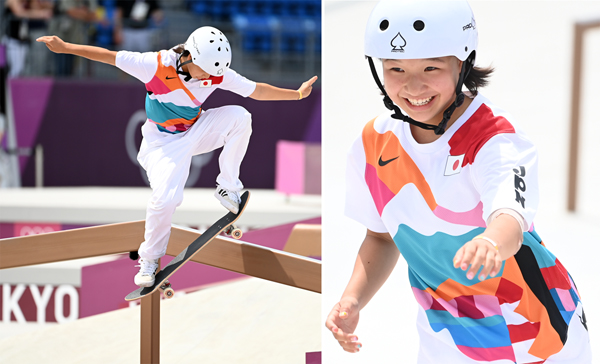13歳の快挙に世界が仰天(スケートボード女子ストリート決勝で技を決めて笑顔の西矢椛)/(C)JMPA