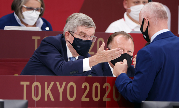 中止になれば放映権料収入がふいに(IOCのバッハ会長=央) (C)真野慎也/JMPA